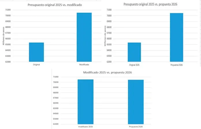 Y es que entre las cifras previstas para el año entrante y el presupuesto de 2025 que fue ampliado con la adecuación, se presenta en realidad una reducción de 63.7 millones de pesos, equivalentes al 0.09 por ciento.