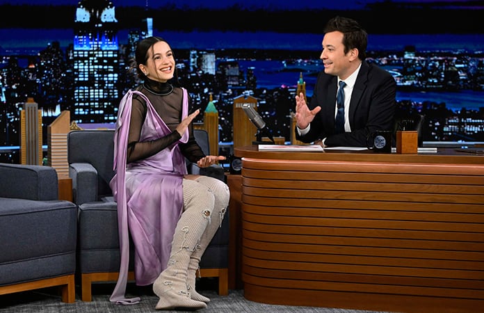 Rosalía, compositora y cantante, explicando al presentador y humorista Jimmy Fallon, en The Tonight Show, porqué cambia de número telefónico con frecuencia. The Tonight Show (11/III).