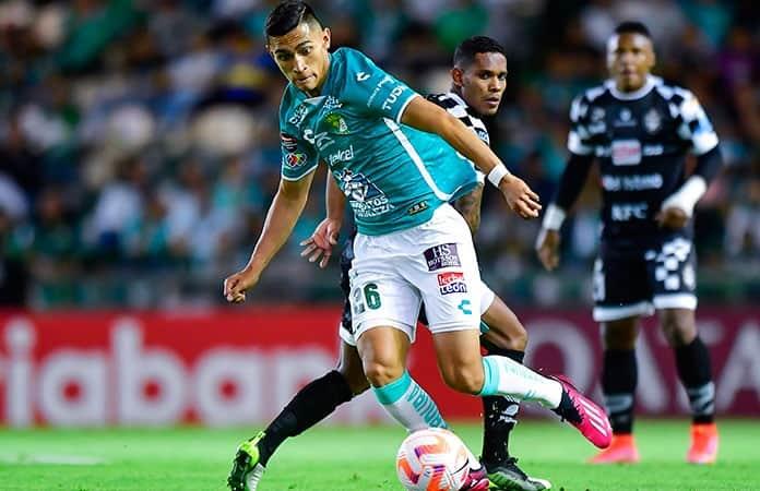 El León dominó el primer tiempo y después de dos remates fallados de Alfonso Alvarado, uno de ellos un cabezazo a un poste al minuto 19, abrió el marcador.