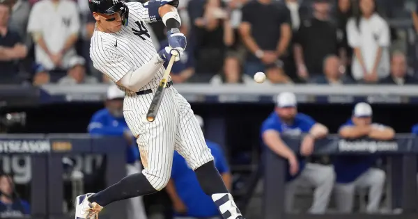 Con los Yankees perdiendo 6-1, iniciaron la remontada con dobles consecutivos en la tercera de Trent Grisham y Judge. Más tarde, en la misma entrada, Judge se mantuvo en una persecución entre tercera base y el plato el tiempo suficiente para permitir que Cody Bellinger llegara a tercera. Eso se volvió importante cuando Bellinger anotó con un elevado de sacrificio de Giancarlo Stanton.