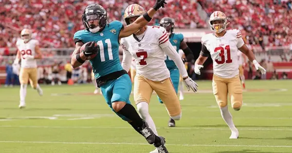 Daniel Jones pasó para 262 yardas para los Colts (3-1), pero Indy no pudo superar el asombroso balón suelto del receptor Adonai Mitchell justo antes de cruzar la línea de gol con lo que estaba a punto de ser una recepción de touchdown de 76 yardas en el tercer cuarto. Los Colts también tuvieron un touchdown de carrera de 53 yardas de Jonathan Taylor anulado por una llamada de sujeción sobre Mitchell con 2:15 por jugar.