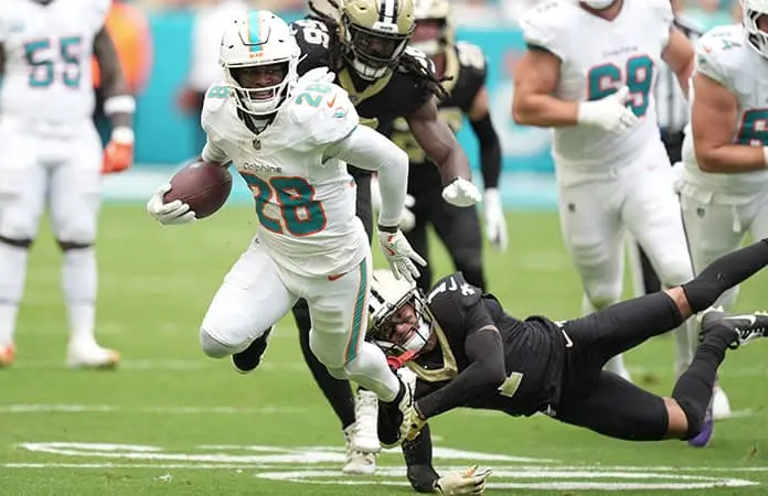 Los Dolphins (5-7) están detrás de Nueva Inglaterra England y Buffalo, que ocupan el primer lugar en el Este de la AFC Este, pero mantuvieron vivas sus escasas esperanzas de playoffs. Los Saints (2-10) han perdido seis de siete.