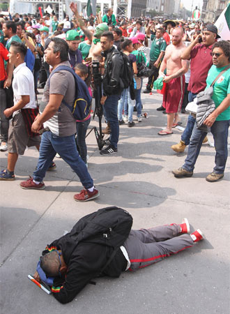 Para desahogarse, los pocos aficionados que se quedaron en el Ángel comenzaron a gritar porras a su selección con el tradicional "México, México, México", para después entonar el “Cielito Lindo”, algunos con el nudo en la garganta o llorando quizás.