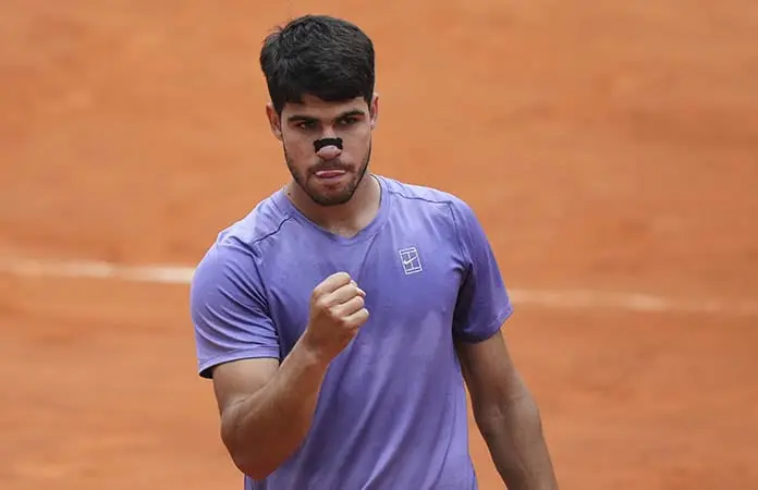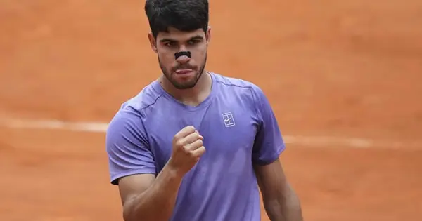 Carlos Alcaraz debió emplearse a fondo para anotarse el martes una victoria 6-3, 3-6, 7-5 sobre Karen Khachanov que le aseguró un lugar en los cuartos de final del Abierto de Italia y una revancha contra Jack Draper, quien lo venció a principios de este año.