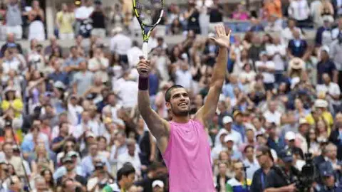 “Me he sentido muy bien otra vez. Una final aquí significa muchísimo para mí”, dijo Alcaraz, quien aún no ha cedido un solo set en esta edición del US Open.