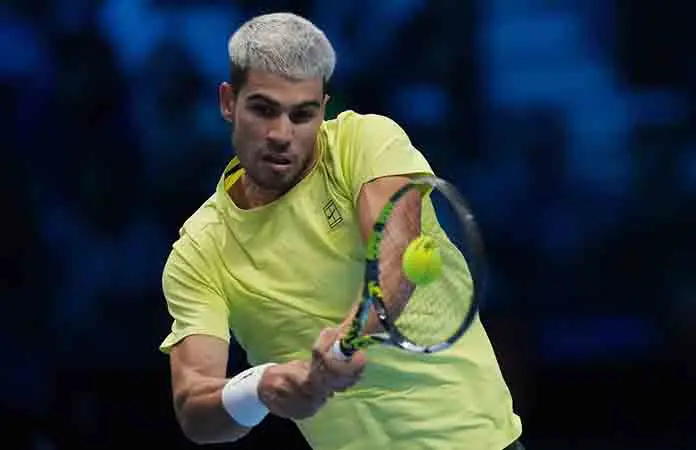 TURÍN.- Carlos Alcaraz aseguró el puesto número 1 al finalizar el año en el tenis masculino el jueves al vencer a Lorenzo Musetti y barrer su grupo en las Finales de la ATP.