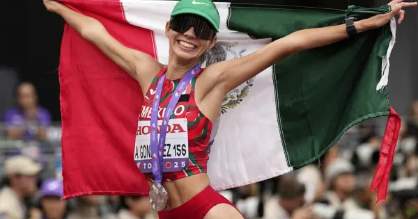 La medalla de plata fue para la mexicana Alegna González (1h26:06), con récord continental de Centroamérica, y el bronce para la japonesa Nanako Fuji (1h26:18), con récord nacional.