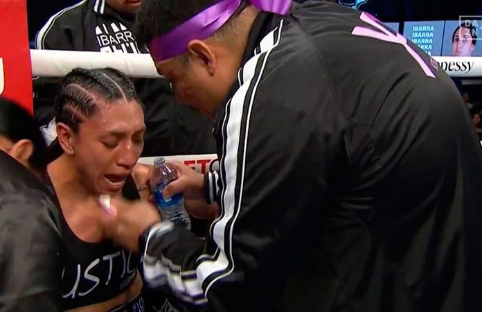Caso completamente diferente al que vivió la boxeadora mexicana Alma Ibarra, quien en pleno combate ante Jessica McCaskill por el título de peso wélter tuvo que suplicar a su entrenador Jorge Capetillo detener la pelea.