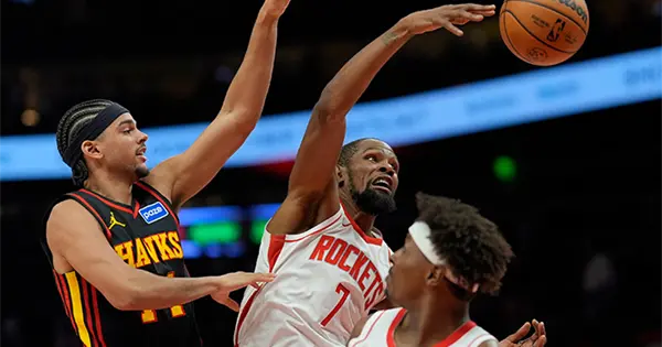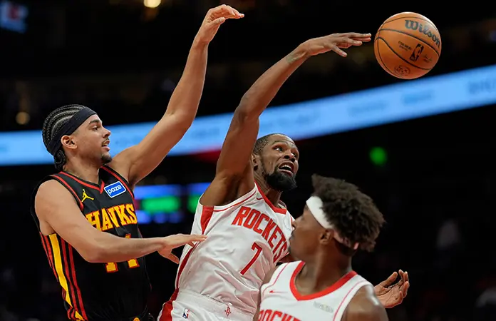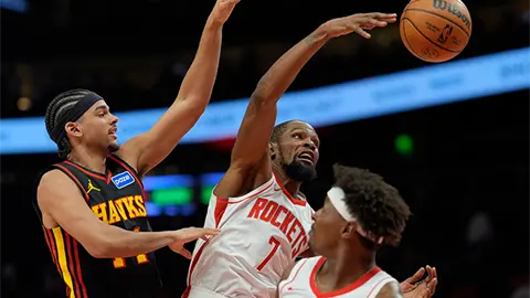ATLANTA.- Kevin Durant anotó 31 puntos y los Rockets de Houston arrollaron el jueves 104-86 a unos diezmados Hawks de Atlanta, que vieron cortada una seguidilla de cuatro victorias.