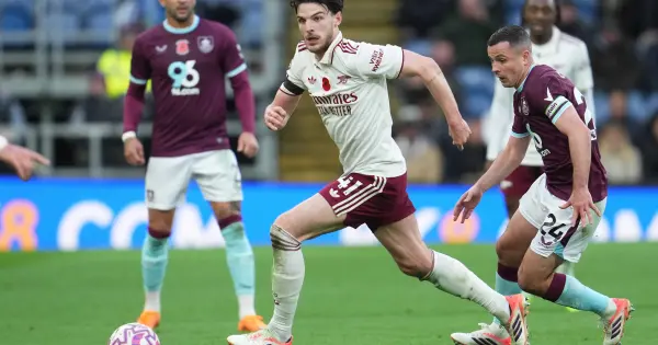 Los goles en la primera mitad por cortesía de Viktor Gyokeres y Declan Rice en Turf Moor hicieron que los Gunners llegaran a nueve victorias consecutivas en la Liga Premier y pusieran más tierra de por medio con el grupo perseguidor.