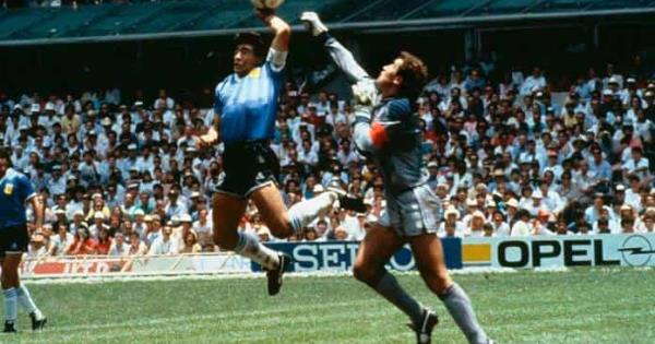 El primero de sus goles se vio confuso en el estadio porque Maradona saltó junto con el arquero Peter Shilton y pareció que había cabeceado. Pero la televisión mostró que Maradona se ayudó con la mano.