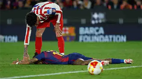 MADRID.- El Atlético de Madrid sufrió al máximo para conservar su ventaja del partido de ida ante el campeón defensor Barcelona en la Copa del Rey, y avanzó a su primera final copera en 13 años pese a perder el martes 3-0 ante el club catalán.