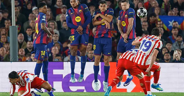 La situación empeoró para el Barça segundos después, cuando el atacante argentino Julián Álvarez colocó con efecto el tiro libre resultante por encima de la barrera defensiva y superó a un García que voló en vano para el 1-0 a los 45 minutos.