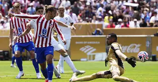 Obligado a ganar al menos por tres, el Atlético mantuvo una presión constante en el complemento. No fue hasta los 87 minutos cuando pudieron anotar el único tanto del encuentro en el Rose Bowl de Pasadena, California. El delantero argentino Julián Álvarez gambeteó a dos defensores del Fogão por el costado izquierdo del área y mandó un pase al otro extremo para que Griezmann empujara el balón al fondo de la red.