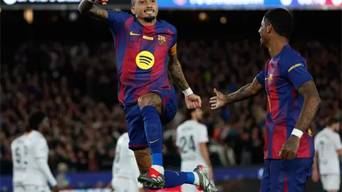 BARCELONA (AP) — Raphinha anotó un doblete para darle al Barcelona la victoria el sábado 2-0 sobre Osasuna y con lo que el Barça aumentó su ventaja en la cima de La Liga, además de aumentar la presión sobre el entrenador del Real Madrid, Xabi Alonso.