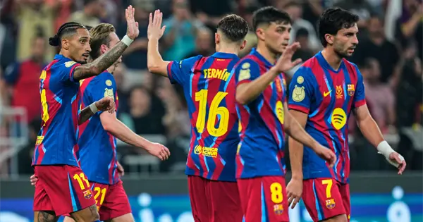 En otra edición del torneo en Arabia Saudí, el equipo de Hansi Flick sometió a sus rivales vascos con una ráfaga de cuatro goles en un lapso de 16 minutos en el primer tiempo. Los azulgranas arrasaron con su astro Lamine Yamal observando desde el banco.