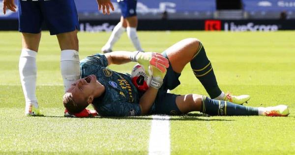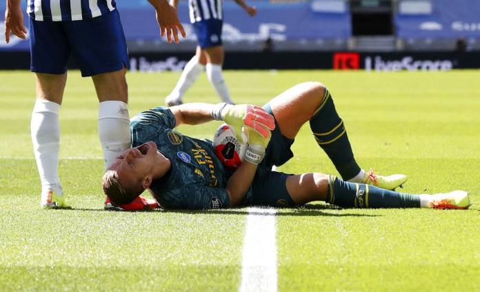 El meta alemán del Arsenal Bernd Leno se lesionó en la rodilla derecha poco antes del descanso del encuentro que su equipo perdió contra el Brighton and Hove Albion (2-1), de la trigésima jornada de la Premier.
