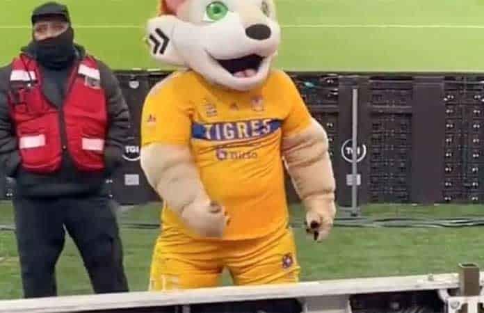 Botarga de Tigres realiza gesto obsceno a la afición de Rayados