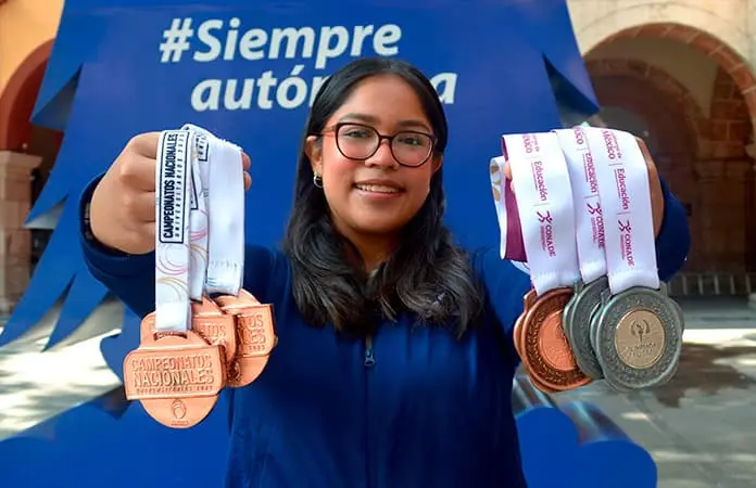 Además de su destacada actuación en CONADE, la atleta universitaria también representó a la UASLP en los Campeonatos Nacionales Universitarios de la ANUIES, celebrados en Monterrey, donde sumó tres medallas de bronce, que se suman a sus anteriores conquistas en otros torneos nacionales.