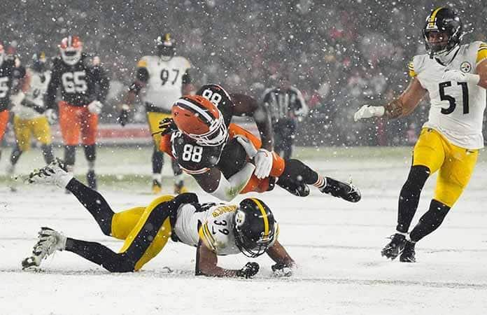 En el último periodo, a pesar de las condiciones, los Browns llevaron el balón hasta la zona roja y anotaron con carrera de Jameis Winston que los puso en ventaja de 18-6, con la conversión de dos puntos, distancia que de inmediato recortó a 18-13 el visitante con touchdown por tierra de Jaylen Warren.