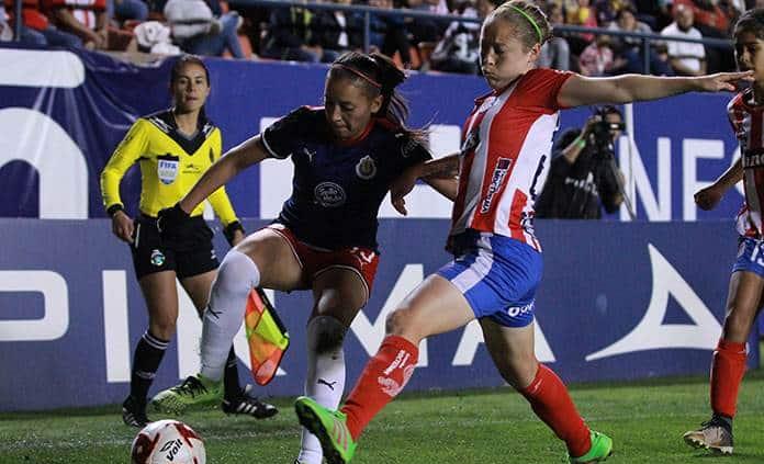 Al minuto 24, Estafenía Izaguirre disparó con dirección a la portería de las Chivas Rayadas del Guadalajara obligando a Blanca Félix a lucir una intervención espectacular con la que impidió que San Luis se adelantara en el marcador.