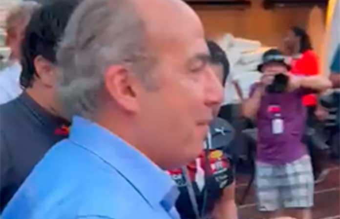 En redes sociales circulan videos en donde se ve al piloto tapatío al lado del expresidente. Ambos caminan abrazados mientras conversan. Se dirigen directo a una alberca y al llegar al filo de la misma, Checo Pérez abraza a Felipe Calderón y ambos se lanzan a la alberca.