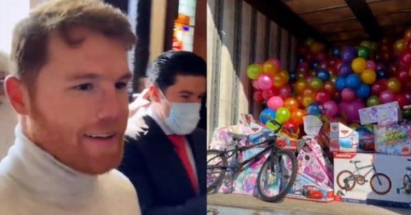 Posteriormente, el "Canelo" abrió la caja del camión de carga para mostrar los cinco mil 500 juguetes para regalar a los niños del DIF Capullos de Nuevo León. El gobernador del estado, Samuel García y su esposa Mariana Rodríguez aprovecharon la situación para agradecer al campeón del mundo unificado del peso súpermediano.