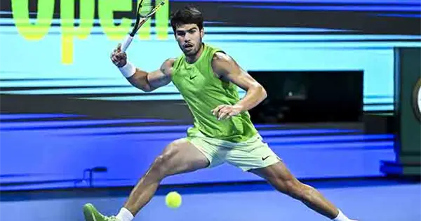 Alcaraz desperdició dos oportunidades con su saque para llevarse el primer set y dejó escapar una ventaja 3-0 en el segundo.