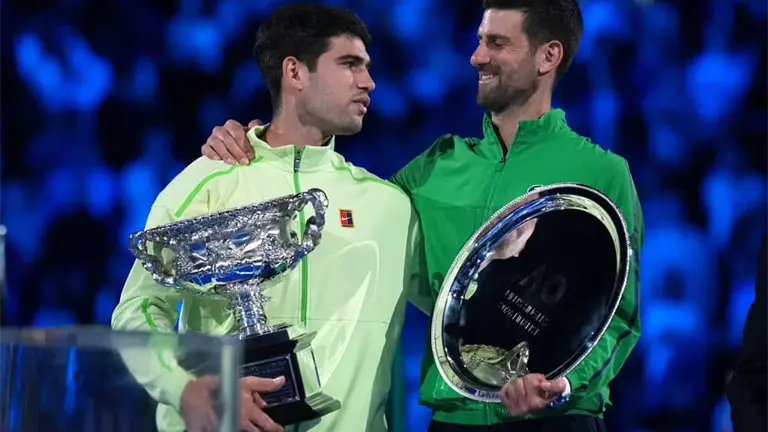 Ambos jugadores venían de agotadoras victorias en semifinales a cinco sets —Alcaraz resistió al número 3 Alexander Zverev el viernes; la victoria de Djokovic sobre el dos veces campeón defensor del Abierto de Australia Jannik Sinner terminó después de la 1:30 a.m. del sábado— y mostraron una forma física, atletismo y resistencia fenomenales durante poco más de tres horas en busca de sus propios logros históricos.