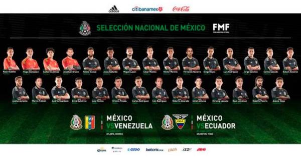 Además de Navarro y Rodríguez, Marco Fabián de la Mora y Carlos Uriel Antuna son los jugadores que reciben su primer llamado en la era de Martino.