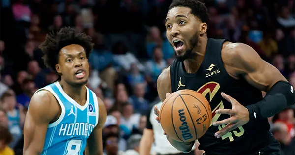 CHARLOTTE.- Donovan Mitchell anotó 24 puntos, Evan Mobley agregó 14 unidades y 14 rebotes, y los Cavaliers de Cleveland tomaron una ventaja de 21 puntos en el primer cuarto, antes de resistir y vencer el miércoles 94-87 a los Hornets de Charlotte, para lograr su quinta victoria como visitantes en los últimos seis duelos.