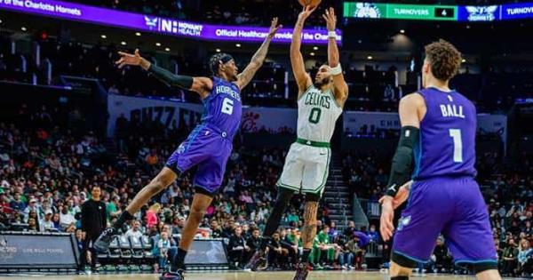 Los Hornets atinaron el 57,8% de sus tiros de campo en la primera mitad y llegaron a estar arriba por 16 antes de que los Celtics se recuperaran casi al final del segundo cuarto para recortar la diferencia a 66-62 con 12 triples.