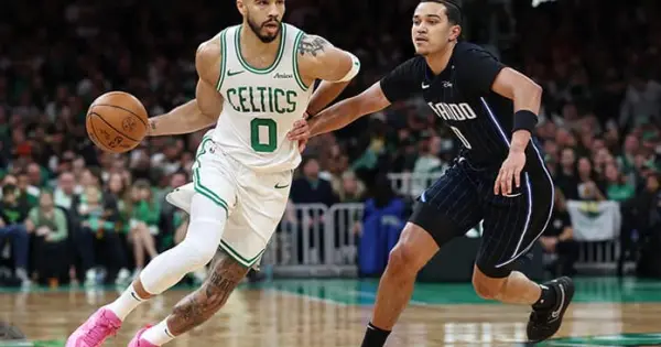 Permaneció en el suelo brevemente antes de ponerse en pie y apretar la mano derecha. Después de una revisión de video por parte de los árbitros, la falta de Caldwell-Pope se calificó como flagrante. Posteriormente, Tatum falló los dos tiros libres subsiguientes, pero permaneció en el juego. Paolo Banchero lideró al Magic con 36 puntos y 11 rebotes. Franz Wagner agregó 23 puntos para Orlando, que no ha superado la primera ronda de los playoffs desde la temporada 2009-10.