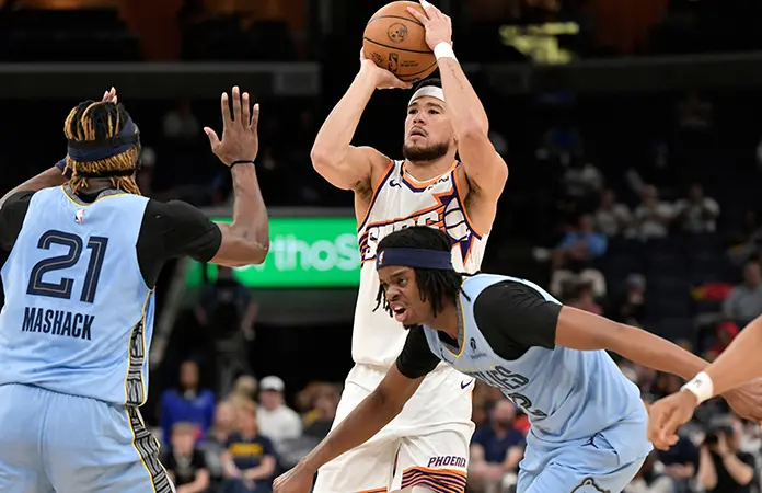 Booker encestó un triple frontal sobre la bocina al final del tercer cuarto para darle a Phoenix una ventaja de dos. GG Jackson clavó una volcada para abrir el cuarto periodo que igualó el marcador 91-91, pero Fleming capturó un rebote ofensivo y su canasta tras el rebote con 11:14 por jugar le dio a los Suns la ventaja definitiva.