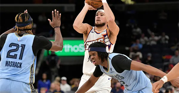 MEMPHIS, Tennessee.- Devin Booker anotó 36 puntos al encestar 16 de 24 tiros de campo, Jalen Green sumó 21 unidades y los Suns de Phoenix vencieron 131-105 a los Grizzlies de Memphis el lunes por la noche.