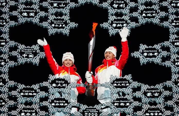 La respuesta al boicot por parte del Gobierno del país asiático llegó literalmente portada por la Llama Olímpica, pues en pareja junto al atleta Zhao Jiawen fue la esquiadora de fondo Dinigeer Yilamujiang, de la minoría uigur de Xinjiang, quien encendió el pebetero olímpico.