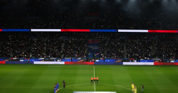 El locutor del estadio en el Parc des Princes también hizo un llamado a la "solidaridad con el pueblo ucraniano" debido a la invasión rusa de Ucrania.
