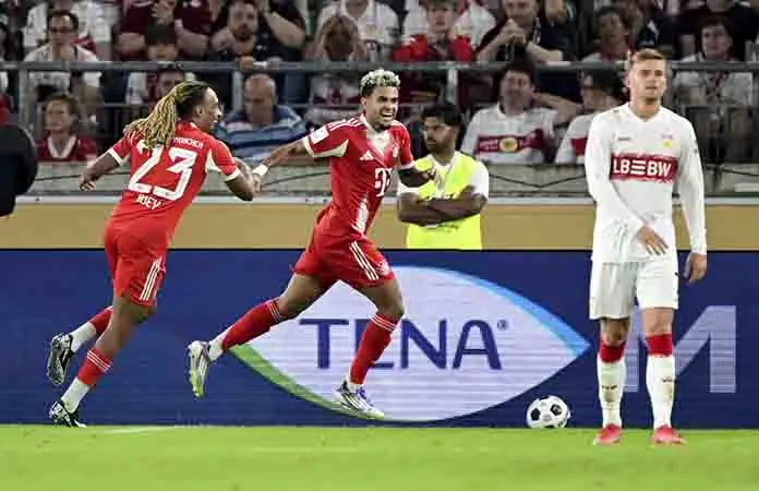 BERLÍN.- El colombiano Luis Díaz anotó y ganó un título en su debut con el Bayern Múnich tras la victoria el sábado 2-1 sobre el Stuttgart en la Supercopa de Alemania.