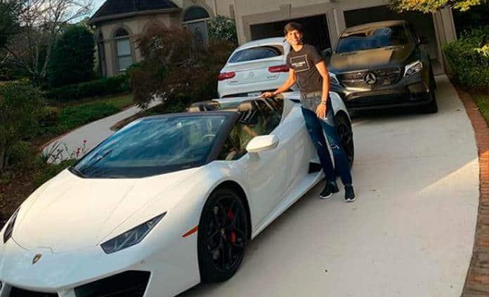 El auto con el que posa el exfutbolista de Tigres, Pachuca y Tecos, es un Lamborghini Huracán EVO 2020, mismo que supera los 6,847,043.0 pesos mexicanos.