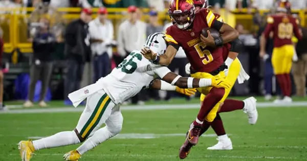 El Novato Ofensivo del Año de la NFL según la AP de la temporada pasada se lesionó en el último cuarto de la derrota de Washington por 27-18 ante los Packers de Green Bay el jueves por la noche y luego se sometió a una resonancia magnética que reveló la lesión. Daniels fue capturado cuatro veces y enfrentó presión durante todo el juego por una defensa de los Packers que utilizó muchos blitzes.