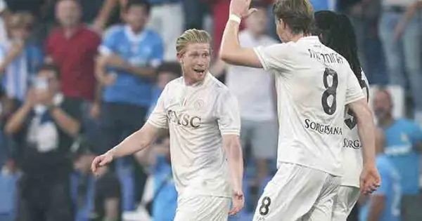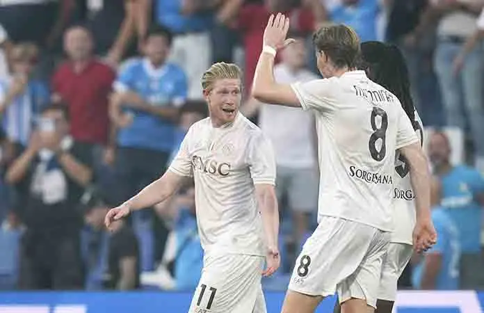 Kevin De Bruyne anotó en su debut y Scott McTominay abrió el marcador cuando el Napoli inició la defensa de su título de la Serie A con una cómoda victoria por 2-0 ante el campeón de la Serie B, Sassuolo.