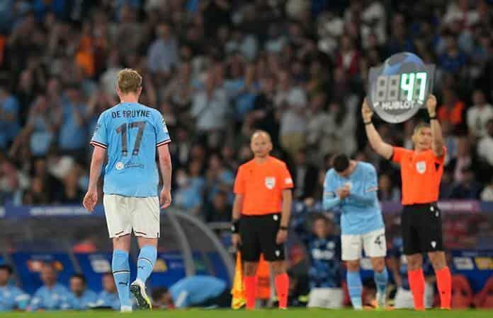 ESTAMBUL (AP) — El volante del Manchester City Kevin De Bruyne tuvo que ser sustituido el sábado con una lesión durante la final de la Liga de Campeones ante el Inter de Milán, la segunda ocasión en tres temporadas que ha abandonado el campo prematuramente del partido de clubes más importante del fútbol.