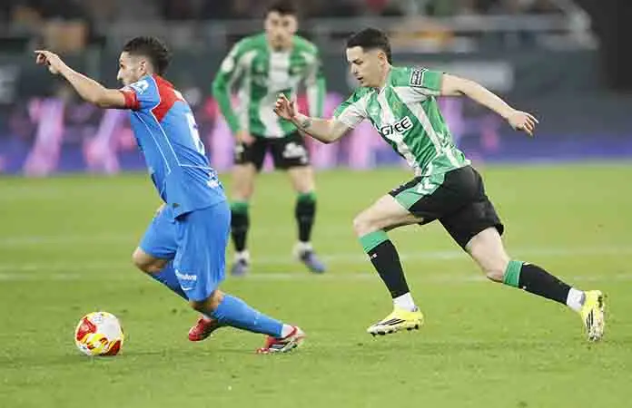 El nigeriano falló un mano a mano ante Adrián y a los 25 minutos disparó alto, en posición dudosa, un servicio de Hancko, pero, aún así, fue un incordio para la nerviosa y poco contundente zaga bética. Así, tras el espejismo local de un potente tiro desde la fronta del colombiano Deossa, el Atlético no perdonó en el último cuarto de hora del primer tiempo.