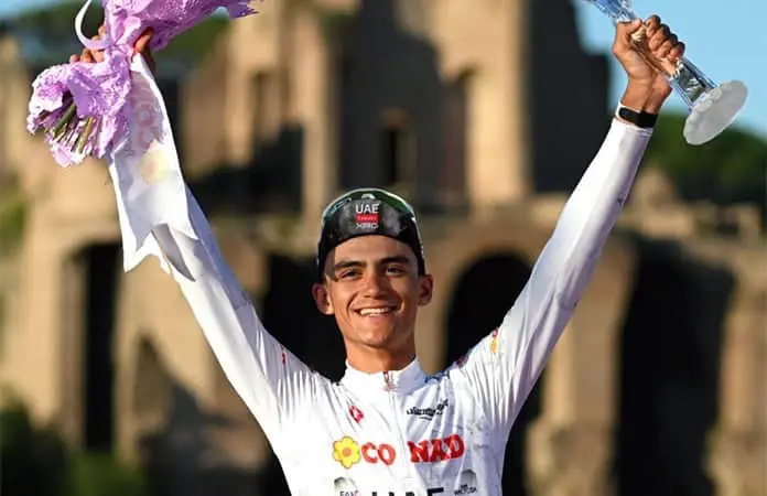 Isaac del Toro firmó la mejor actuación de un ciclista mexicano en el Giro de Italia. El oriundo de Ensenada, Baja California, terminó en segundo lugar detrás del británico Simon Yates (Visma Lease a Bike) que se ha proclamado vencedor de la 108 edición del Giro una vez finalizada la vigésimoprimera y última etapa disputada con salida y meta en Roma, de 143 km de recorrido.