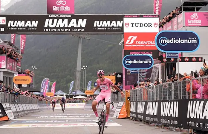 La etapa de 155 kilómetros (96 millas) desde San Michele All’Adige hasta Bormio incluyó tres ascensos, incluyendo el Mortirolo, uno de las subidas más difíciles e icónicas del Giro.