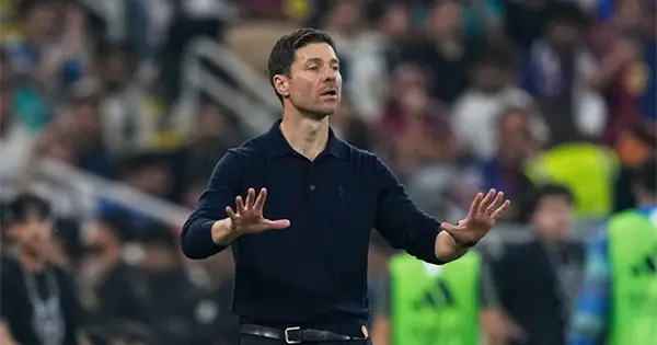 Después de la derrota del domingo en Yeda, Alonso parecía querer que su equipo hiciera un pasillo de honor para el Barcelona durante la ceremonia de premios, pero Kylian Mbappé y otros jugadores lo llamaron de vuelta y se alejaron.