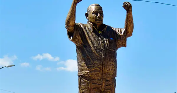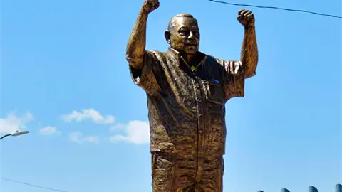 La escultura instalada en las afueras del estadio y el bulevar también llevará su nombre