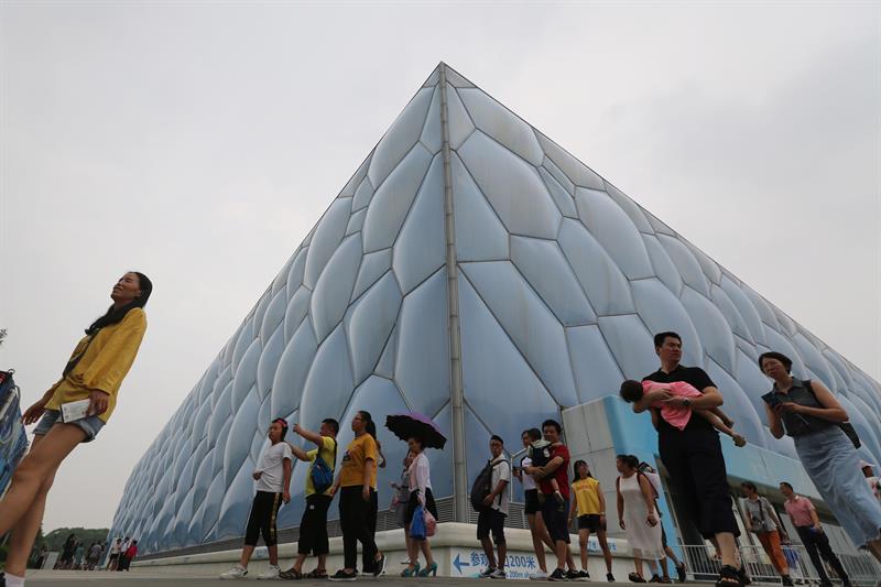A su lado, el Cubo de Agua sufre un sino similar, aunque algunas de sus piscinas están abiertas al público y hasta ha sido la sede de programas televisivos en los que famosos chinos se lanzan desde un trampolín.