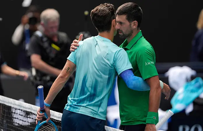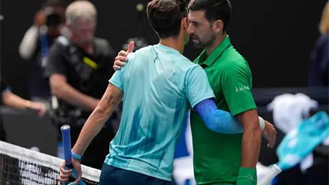 Djokovic llegó a los cuartos de final sin jugar. Una lesión abdominal provocó el retiro anticipado de su rival checo Jakub Mensik.
