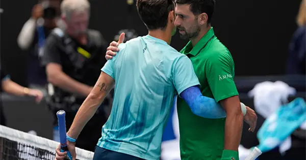 El miércoles, el astro serbio perdió los dos primeros sets de su partido contra Musetti, 6-4, 6-2. Djokovic tenía un quiebre a favor en el tercer parcial cuando el italiano no pudo seguir por la lesión en la pierna derecha.